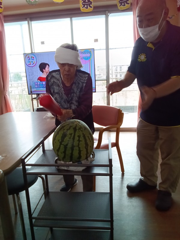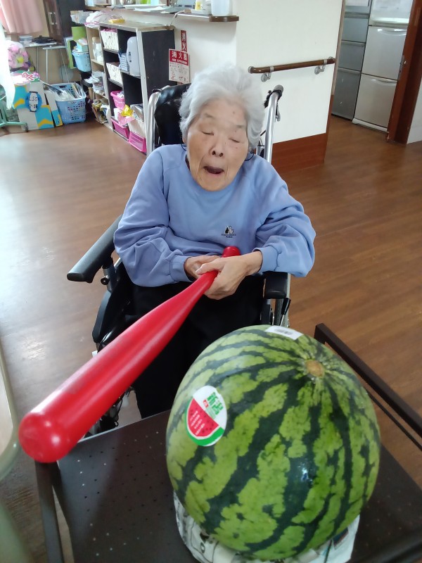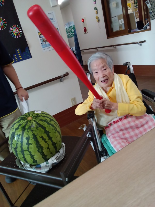 今回は1階のご利用者様のスイカ割りのご様子をお届けいたします!