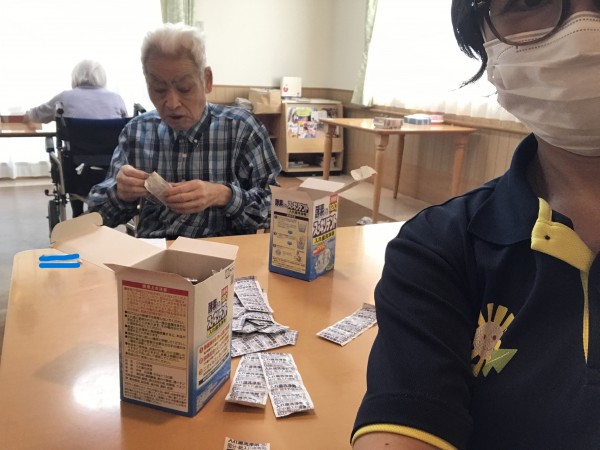 お昼ご飯あとに、一緒に内職を行いました(*´▽`*)