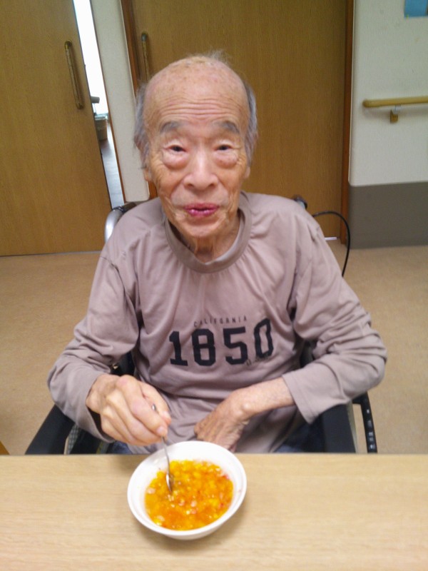 ご利用者様にお手伝いして頂き美味しいフルーツポンチが出来ました!(^^)!