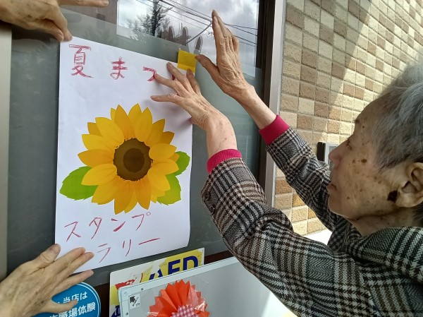 地域のお子様達が暑い中、各施設を回りスタンプを集めて歩く(^^)/