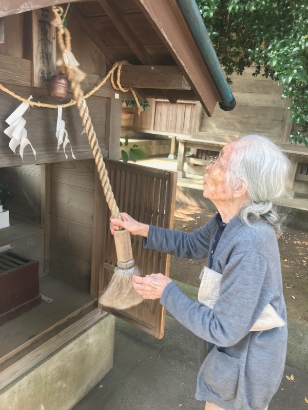 掃除が終わると、その後は少しお散歩に出かけ、ホームのすぐ隣にある神社へ。