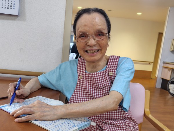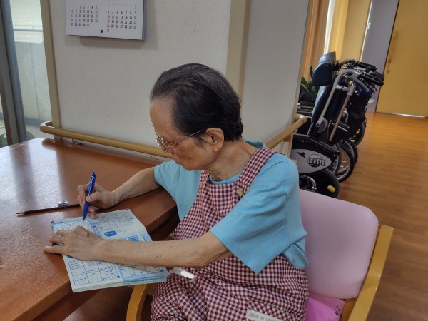 『コレよぉ〜。娘がやりなさいって、買ってくるのよ。』ご入居前から取り組まれてたそうで、毎日コツコツとやっていらっしゃるそうです。