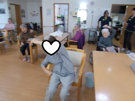全員が参加されるわけではありませんが、車いす????の生活のご利用者様であっても、上半身を中心に