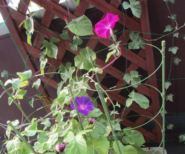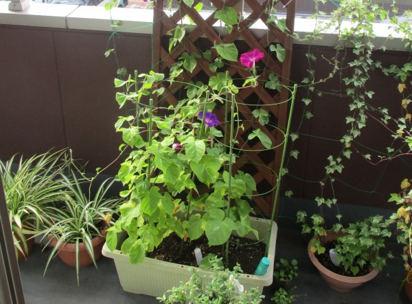 1ヶ月ほど前「朝顔成長記録」と題して、2Fフロアのベランダに植えた朝顔の様子をお伝えしました。あの時はもう少しで花が咲きそうという状態でしたが、あれからどれくらい成長したのでしょうか?