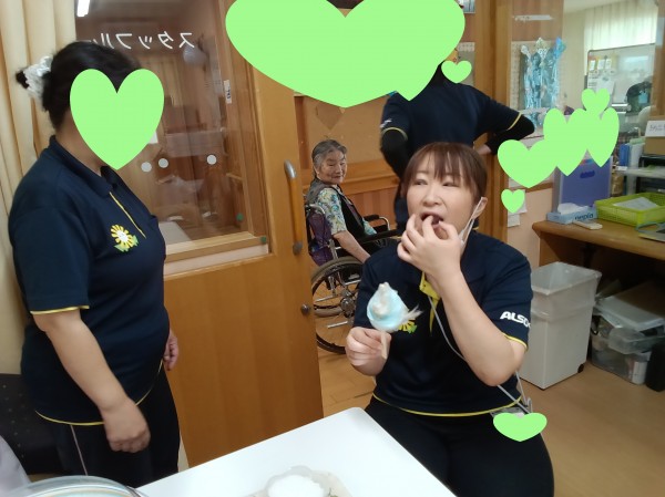 そして、ホーム長が試食…「ん!甘くて美味しい!ちゃんと綿あめの味がします!」と(´艸`*)