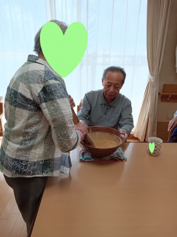 うどんにいれるすりごまをご利用者様にすって頂きました。