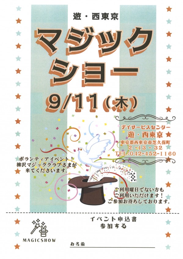 ・9月11日(木)開催!マジックショー!~マジックによる不思議な体験~