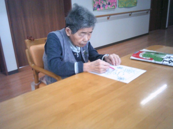 うちわと風鈴の塗り絵を行っているご様子です( ^ω^)・・・   難しいね~! どういう風に塗ろうかしら?? 悩み・・(笑)