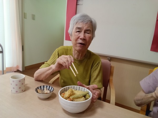 暖かいそばを用意して、皆様にはお好きな天ぷらを選んでもらい食べて頂きました(*^^*)