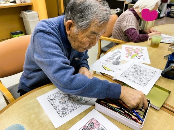 最近ご入居者様がはまっているもの、それは『塗り絵』と『ちぎり絵』です!!