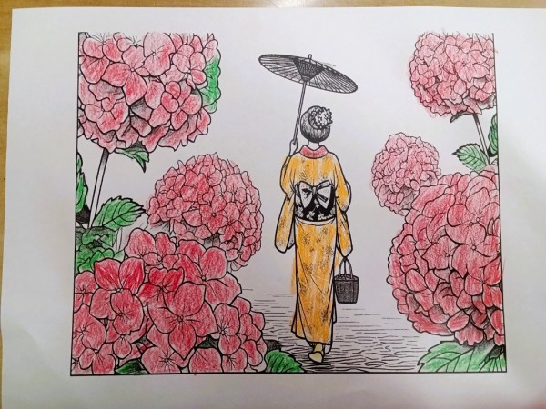いつも真面目なY様の作品☆あじさいの色が統一されてて女性の着物がとっても映えてます☆素敵☆