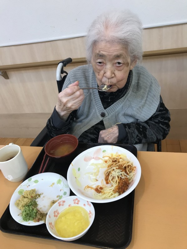 普段の献立にはないミートソーススパゲティを召し上がっていました(*^▽^*)