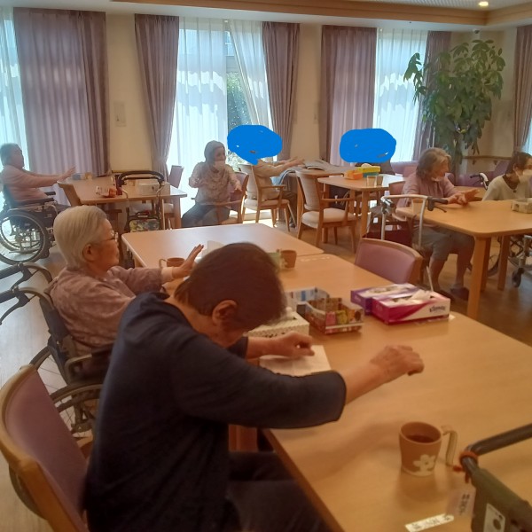 Tです。今日は1階の利用者様の昼食前の体操風景のご紹介です。