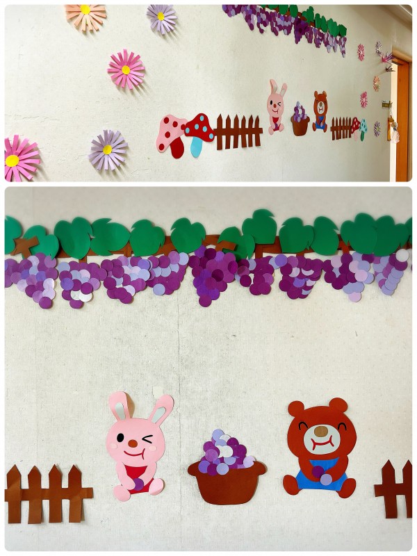 4階の壁には美味しそうな秋の味覚のブドウが生っておりますです(●´ω`●)