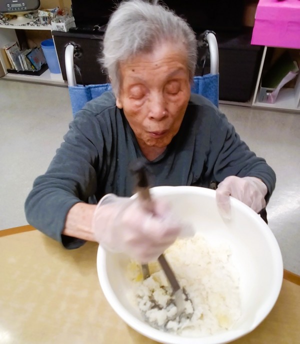 今日のおやつは、みんなで「いももち」を作ってみました~\(^o^)/