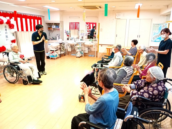 ★☆令和7年♬敬老会開催‼長寿の祝い鈴木勝也ホーム長より紅白饅頭おやつレクリエーション‼2025年令和7年✨