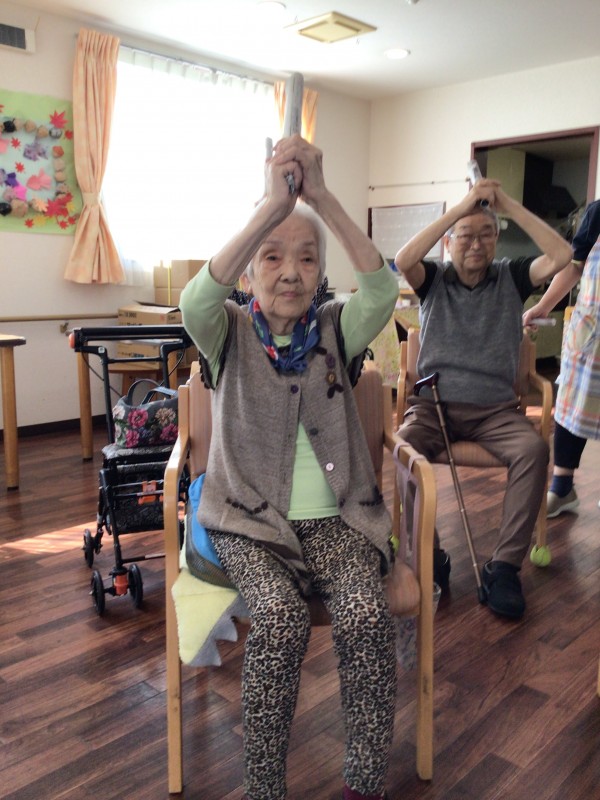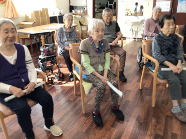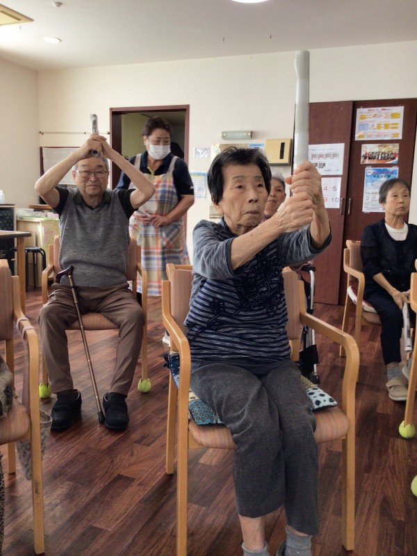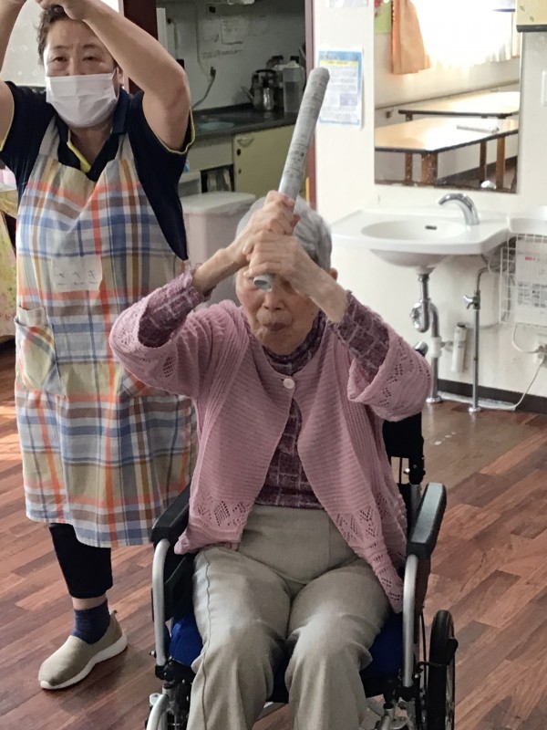 いつもはリズム体操や口腔ヨガ等、やり慣れた体操でしたが、今回は【殺陣(たて)体操】を行いました。