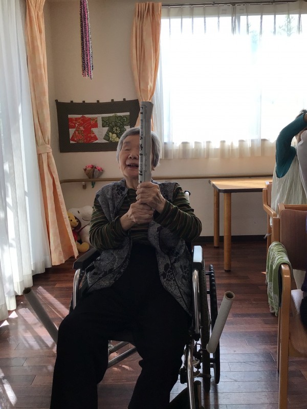 皆さん童心に帰って「新聞で作った刀!」を振り回して楽しそうに大きい声(ヤー!)をあげて頑張っておられました(^o^)丿