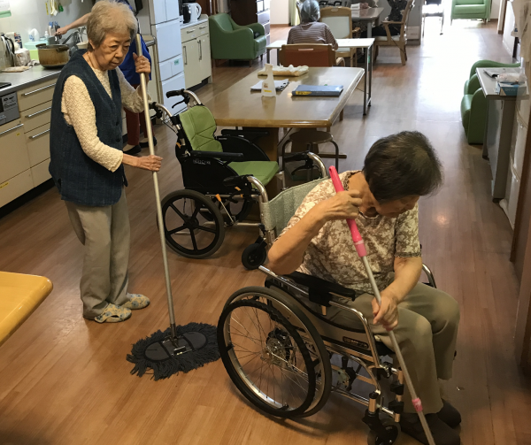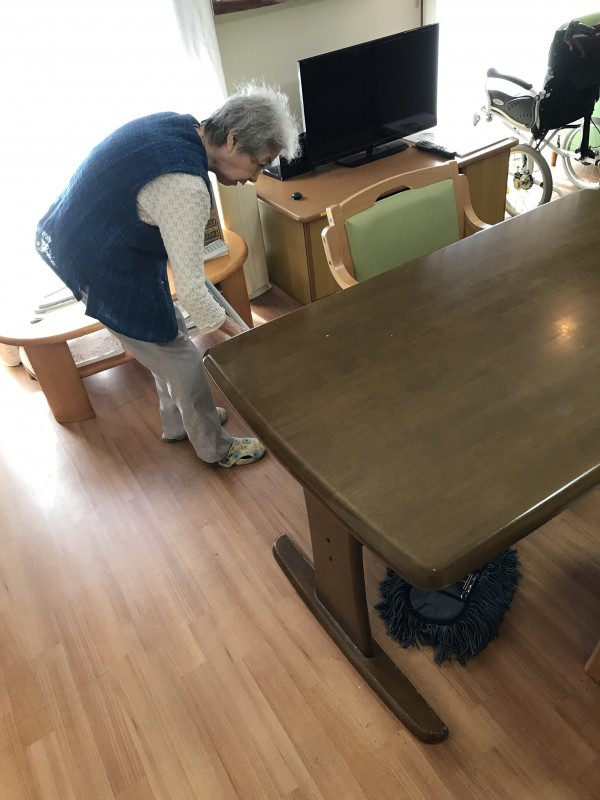 スタッフが腰を気遣うと「大丈夫、大好きだから」や「痛くなったら止めるから」と一生懸命フロアを綺麗にして下さいます。