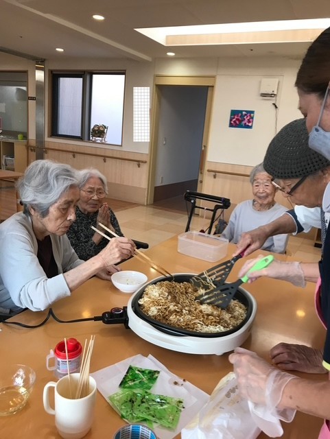 そこで8月のおやつレクでは焼きそばとたこ焼きを作ってみました(^O^)/
