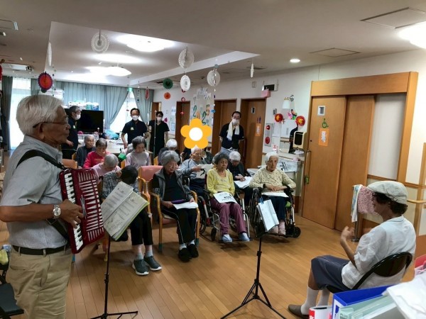 アコーディオン演奏の「歌声広場」の方々が来てくださいました! ~ グループホームみんなの家・横浜宮沢の介護ブログ ~