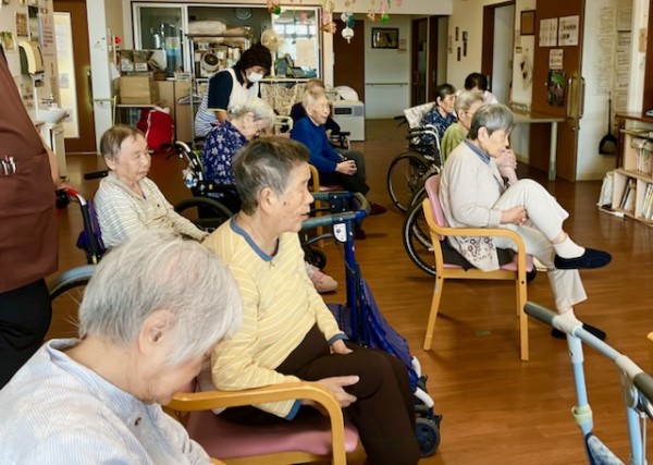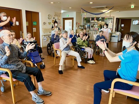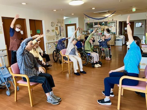 1F利用者様も集合して、2Fにて体操の