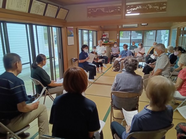 休憩の合間に「フレイルと防災についてのお話」を頂きました。普段は転倒予防、非常時は自分の身を守ることができる、日頃から体を鍛えることで、災害の
