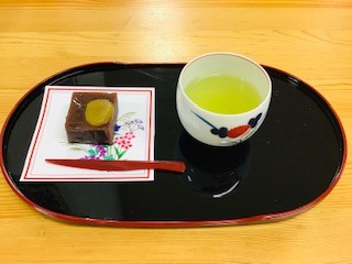 今日のおやつは、秋らしく栗蒸し羊羹です(^^♪