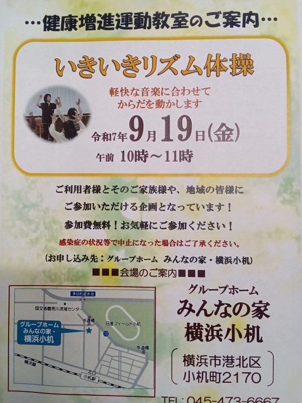 ご家族様や地域の皆様が参加できる訪問いきいきリズム体操を開催します♪