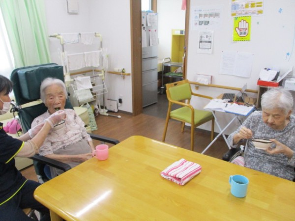 おやつの抹茶ゼリーを作りました( ^ω^)・・・ 美味しかったわ!! と大喜びになられていました(*^_^*)