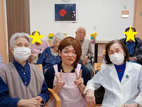 敬老会では二人羽織ならぬ…目隠しでお化粧♬