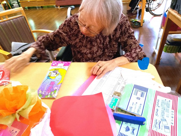いろんな色の花紙を使ってたくさんのお花を作っているようです。