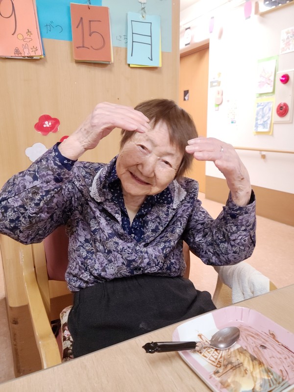 グループホームみんなの家大宮三橋 敬老の日のおやつはもちろん手作り!ボリュームたっぷりのケーキでお祝いしましょう♪