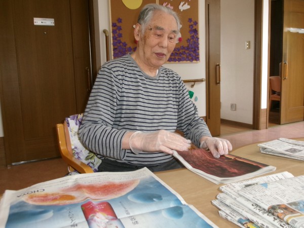 「新聞折り」をお願いしました(^^)/