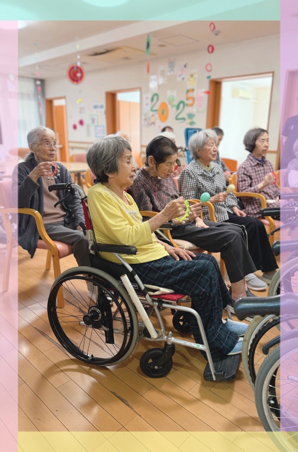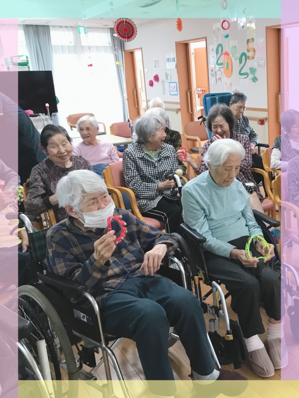 リズミカルな曲になるとタンバリンや鈴やマラカスなどで皆様と曲に合わせて鳴らし盛り上がりました。