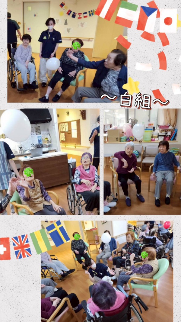 赤組・白組とも風船を落とさぬよう力を合わせ声掛けをしながらのラリー( *´艸`)