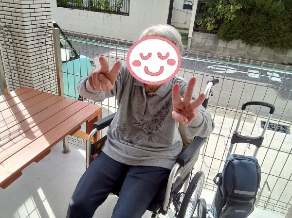 お飲み物を片手に、1階にある職員お手製テラスにて日向ぼっこを楽しみます。