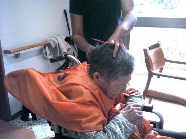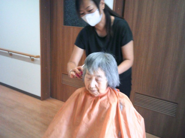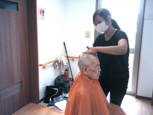 今日は1階で訪問理美容の方による髪の毛をカットしていただきました。 そのご様子をお知らせいたします!!