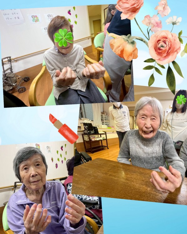 今回のオレンジカフェは‥入居者様の娘様が案を出して下さったお化粧とマニキュアです(^^♪