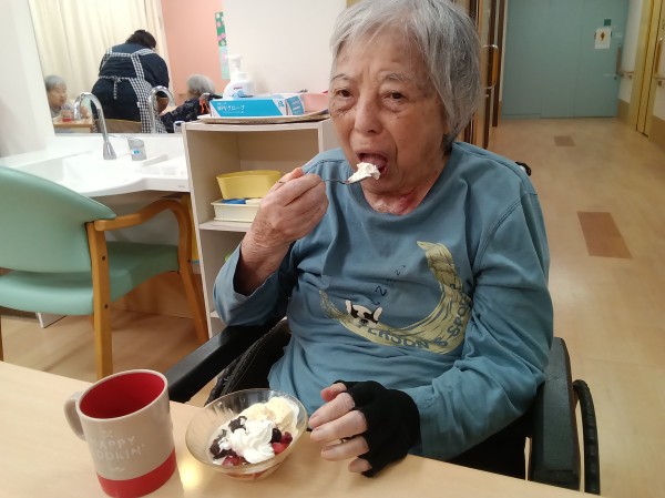 今回は、アイスクリーム入りコーヒーゼリーとオレンジジュースでお祝いでした~♬