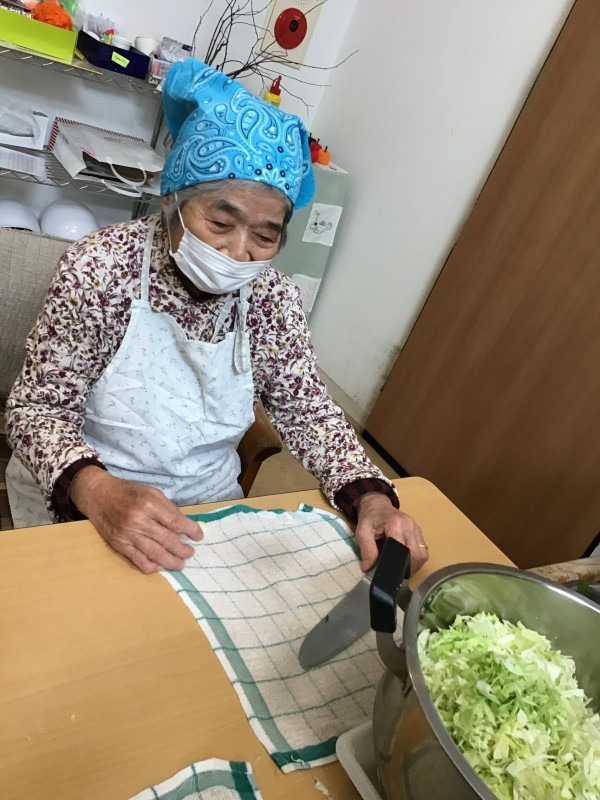 ポテトサラダの具材を切っていただいたり、酢の物に使うワカメも水で戻した後に食べやすい大きさにハサミで切って下さいます。