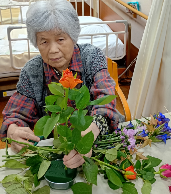 フラワーアレンジメントで活けた花は、自身の居室へ持ち帰られ、飾られていました。