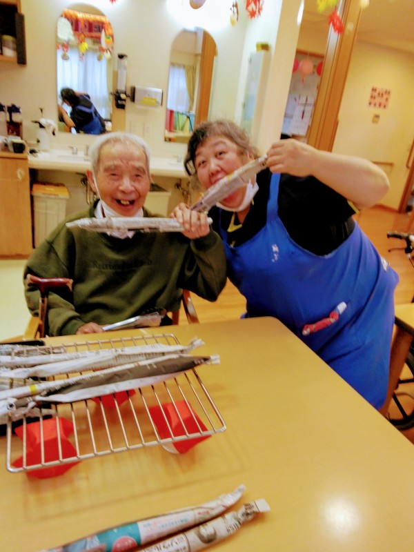 今日は秋のレクリエーションで新聞紙で”秋刀魚づくり”をおこないました(^^♪
