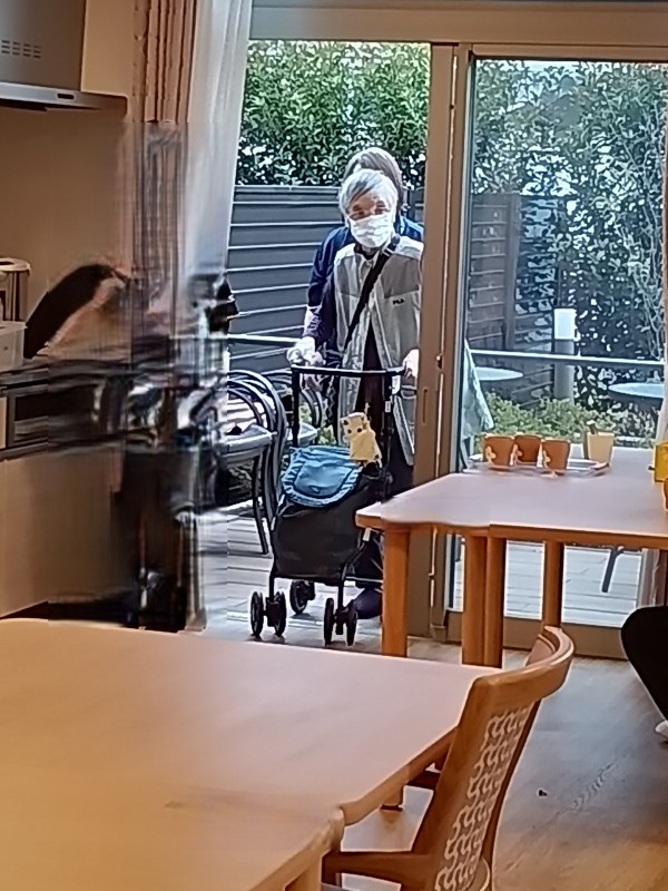散歩ではなくテラスで少し秋の空気を感じてもらいましょうか。ということになりました。