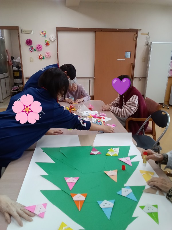 グループホーム松伏に中学生来所(≧▽≦)❤クリスマスツリー作成