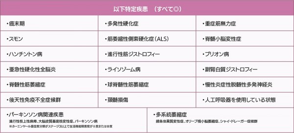 医療的ケアが必要な方の受入が可能となります。(一例ではありますが、下記の症例や状態の方の受入が可能です。)