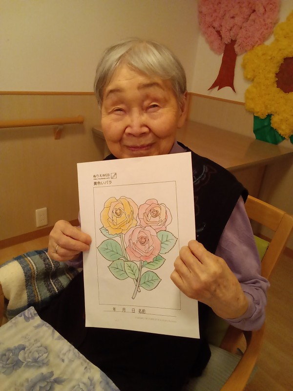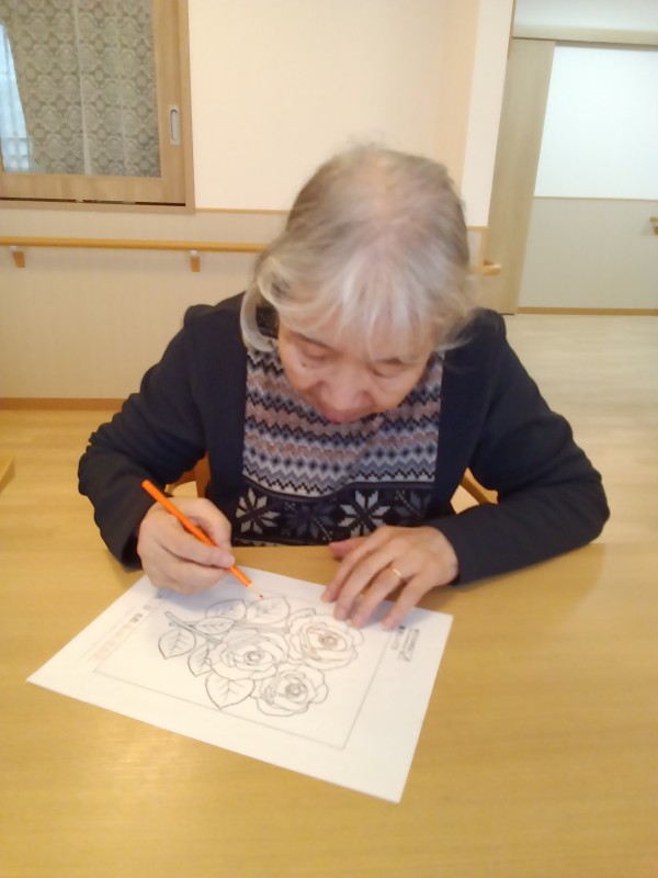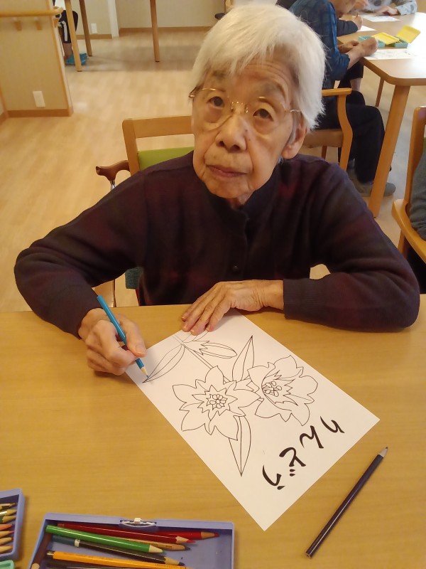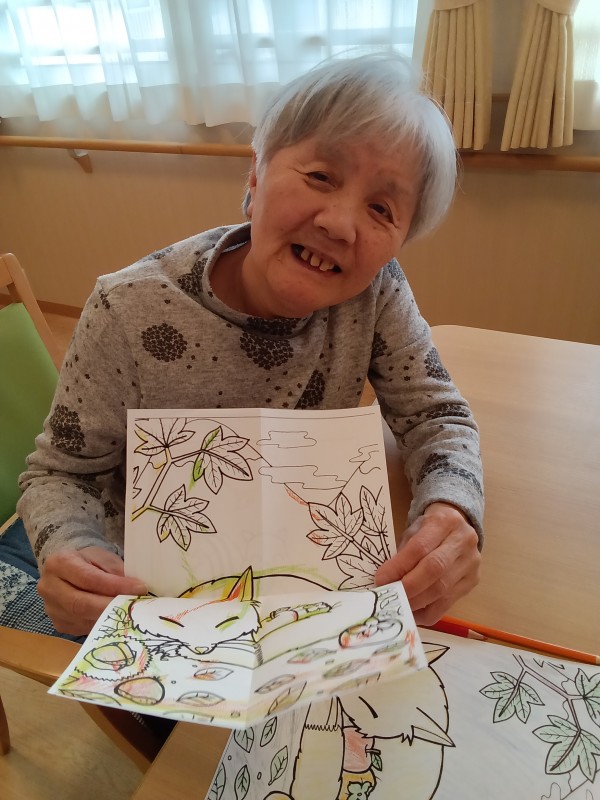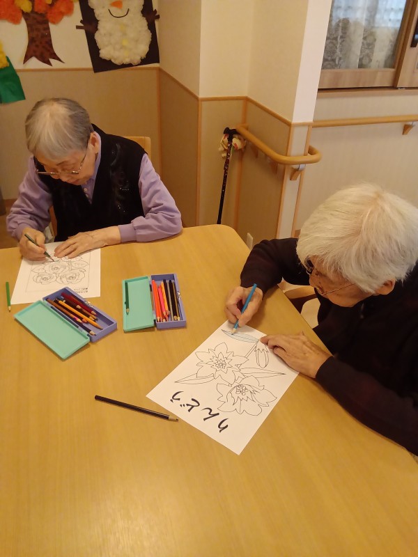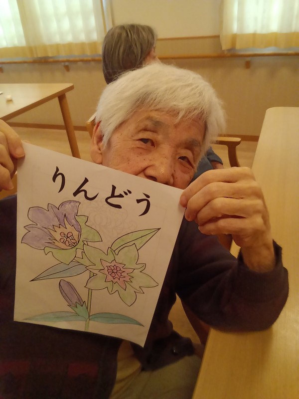 今回は秋の味覚、お花の塗り絵を塗っていただきました!