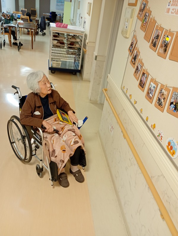 夕食が終わったところなのでしょうか…車椅子で一直線にぱわーすぽっとに向かっております…