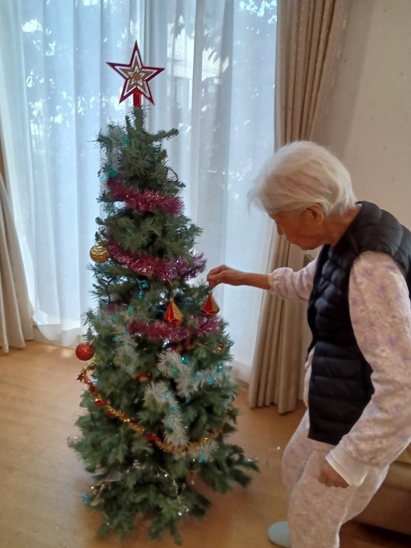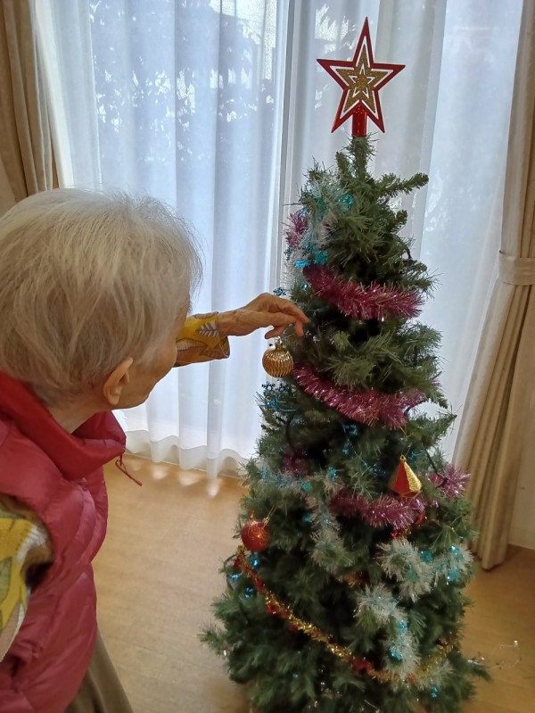 少し早いですが、ホームでは皆さまと一緒に クリスマスツリーの飾り付け を行いました。
