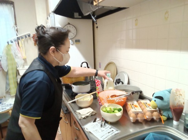 「つまみ食いしないでねぇ」と言われましたが、二人で仲良く準備しました。